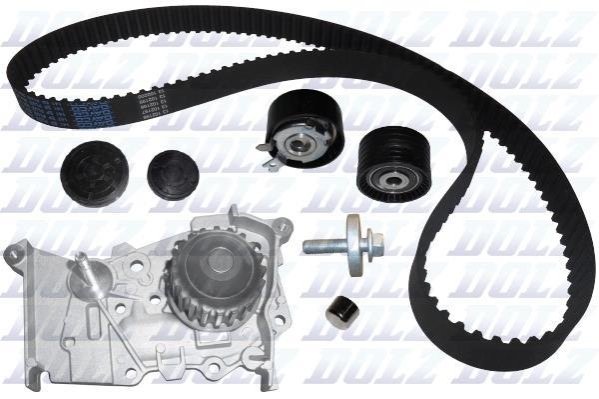 RENAULT К-т ГРМ (помпа + ремень+ 2 ролика + крепеж) Kangoo 1.6, Megane 1.6 01- DOLZ KD046
